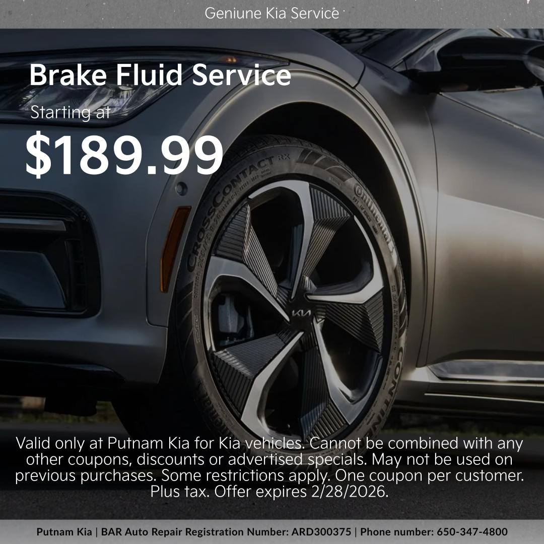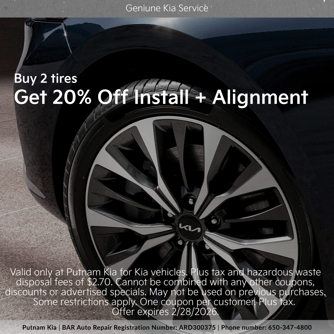 Valid only at Putnam Kia for Kia vehicles. Plus tax and hazardous waste disposal fees of $2.70. Cannot be combined with any other coupons, discounts or advertised specials. May not be used on previous purchases. Some restrictions apply. One coupon per customer. Plus tax. Offer expires 2/28/2026.