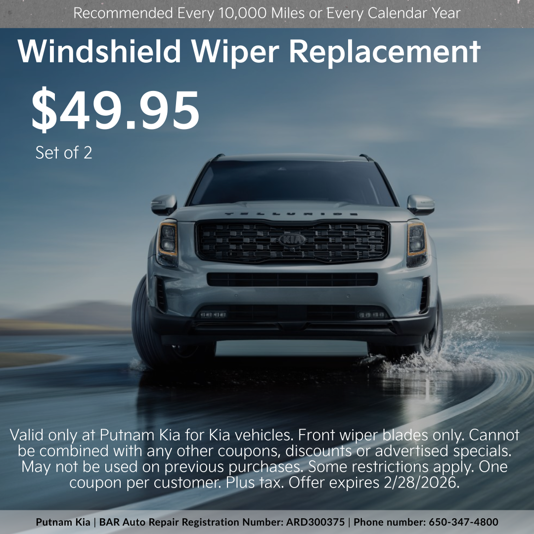 Valid only at Putnam Kia for Kia vehicles. Front wiper blades only. Cannot be combined with any other coupons, discounts or advertised specials.